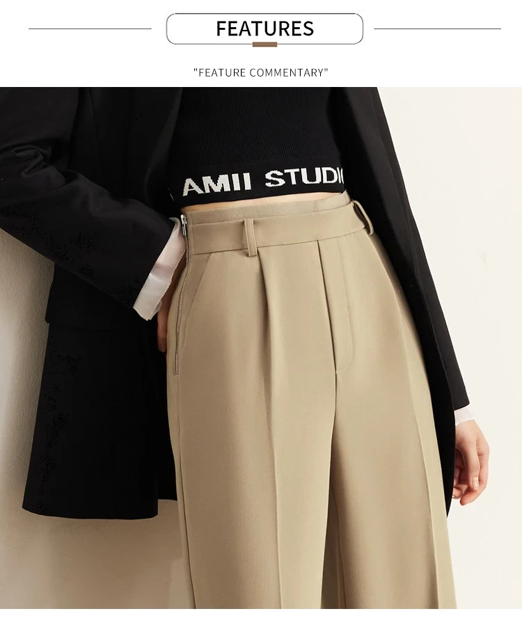 AMII Minimalism Autumn 2025 New Suit Pants Women Fashion All-match Casual High Waist Wide Leg Loose Floor Length Pants 12270335