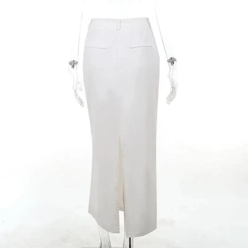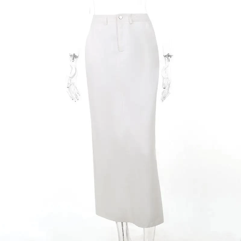 HOUZHOU White Split Long Skirt Women Fashion Casual High Waist Slim Straight Maxi Skirt Korean Elegant Office Lady Autumn 2023