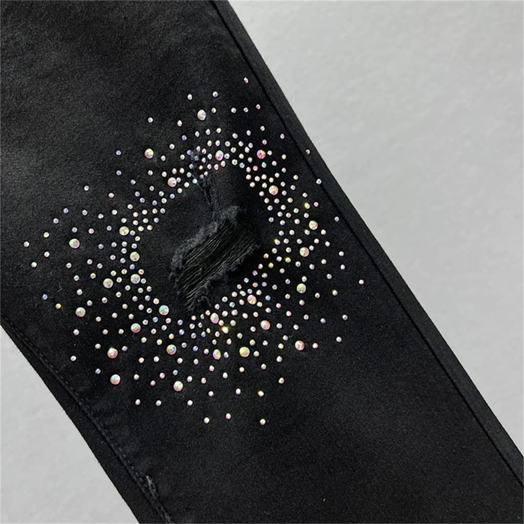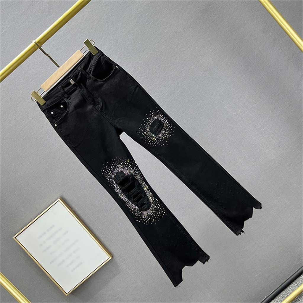jeans Spring Pearl Trousers Beaded Split Washed Micro-pull Women's Denim Pants Ladies Full Length Jean Trouser (Color : Picture color, Size : XL code)