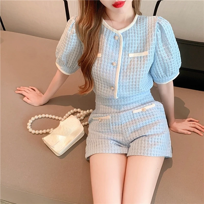 Summer Women's Short Sets Korean Fashion Top and Shorts 2 Piece Set Outfits Suit with Shorts for Women New In Matching Sets